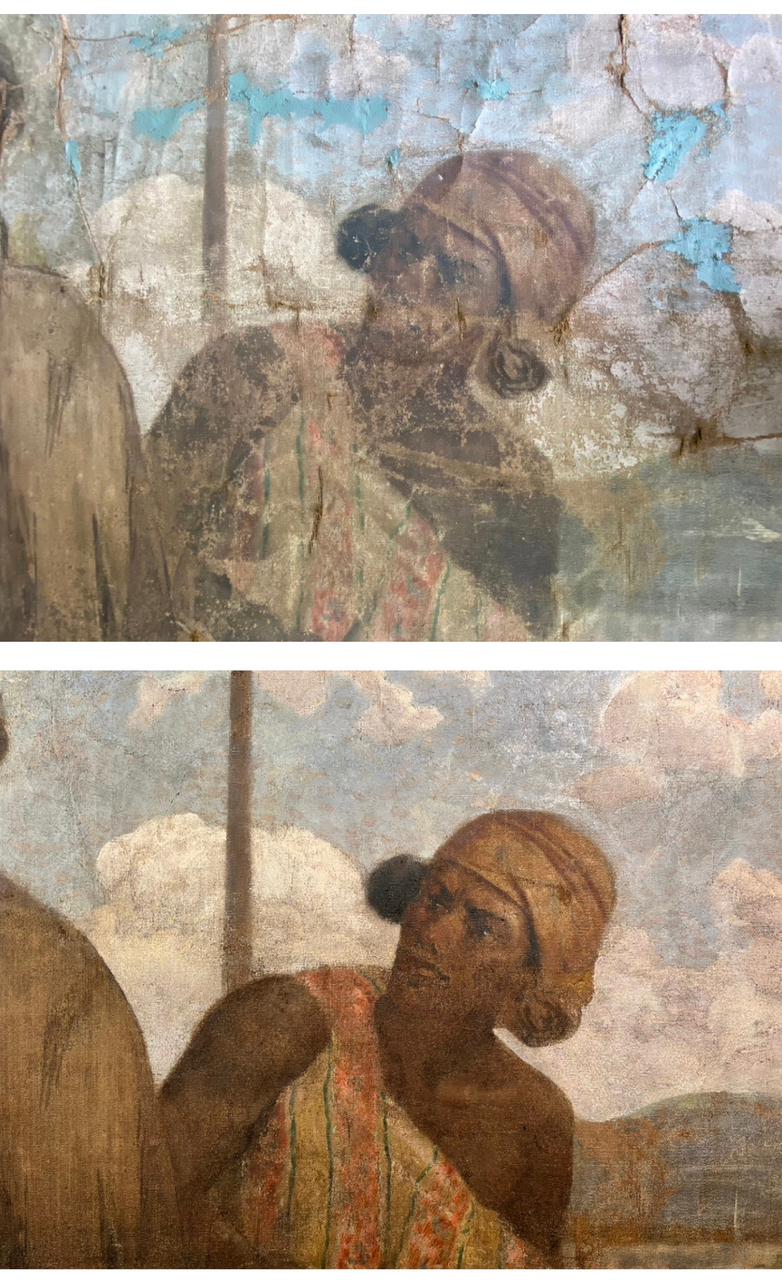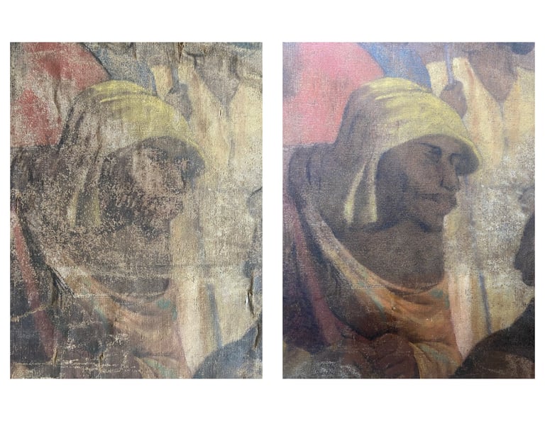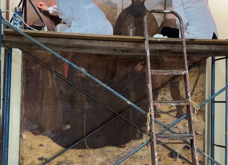 El proyecto de restauración de la obra "Beatos mártires Agatángel de Vêndome y Casiano de Nantes" (Pedro Lira, ca. 1905) fue realizado por encargo del Museo Nacional de Bellas Artes (MNBA) y tuvo como objetivo recuperar la unidad potencial de la obra, perteneciente a la Orden de los Hermanos Menores Capuchinos. La obra, un óleo sobre tela de 304 × 240 cm, presentaba un mal estado de conservación, con un alto nivel de deterioro en sus distintos estratos constitutivos. Frente a esta condición, se llevaron a cabo diversas acciones de registro, conservación y restauración orientadas a su estabilización material y recuperación de la lectura visual.